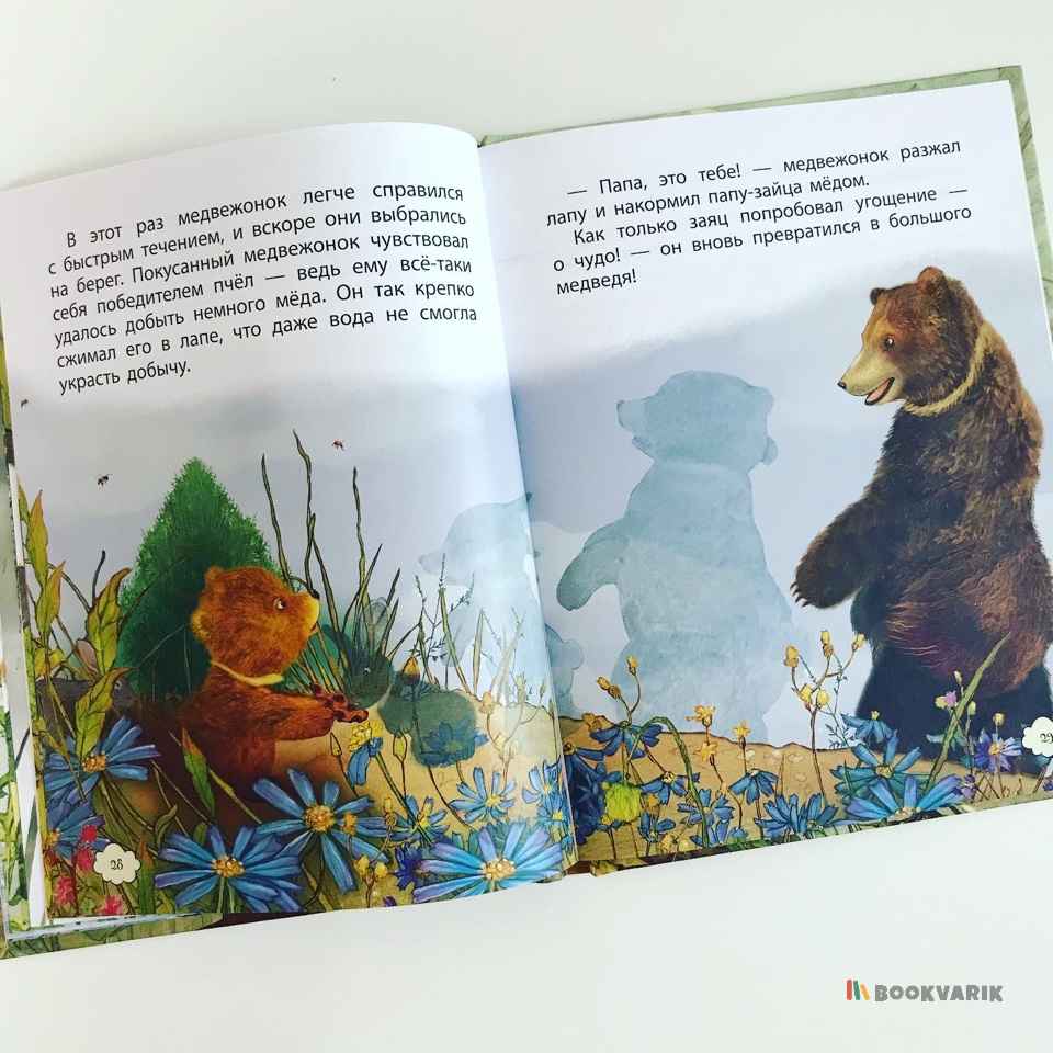 Как же спокойно медвежонку рядом с папой! Он и от дождя укроет, и мёд найдёт, и злого зверя подальше отгонит…