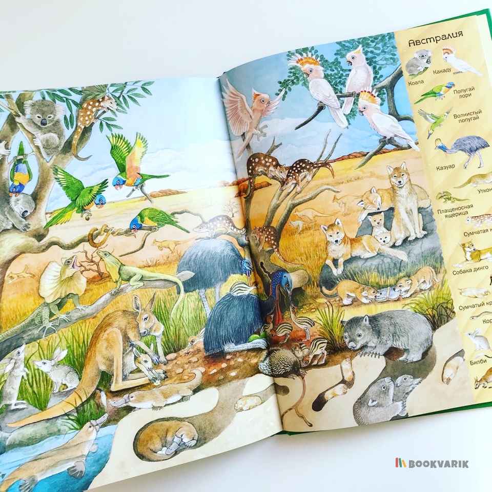 Являясь по сути виммельбухом, это не просто "книга-бродилка-гляделка", это еще и энциклопедия, и определитель животных и растений.