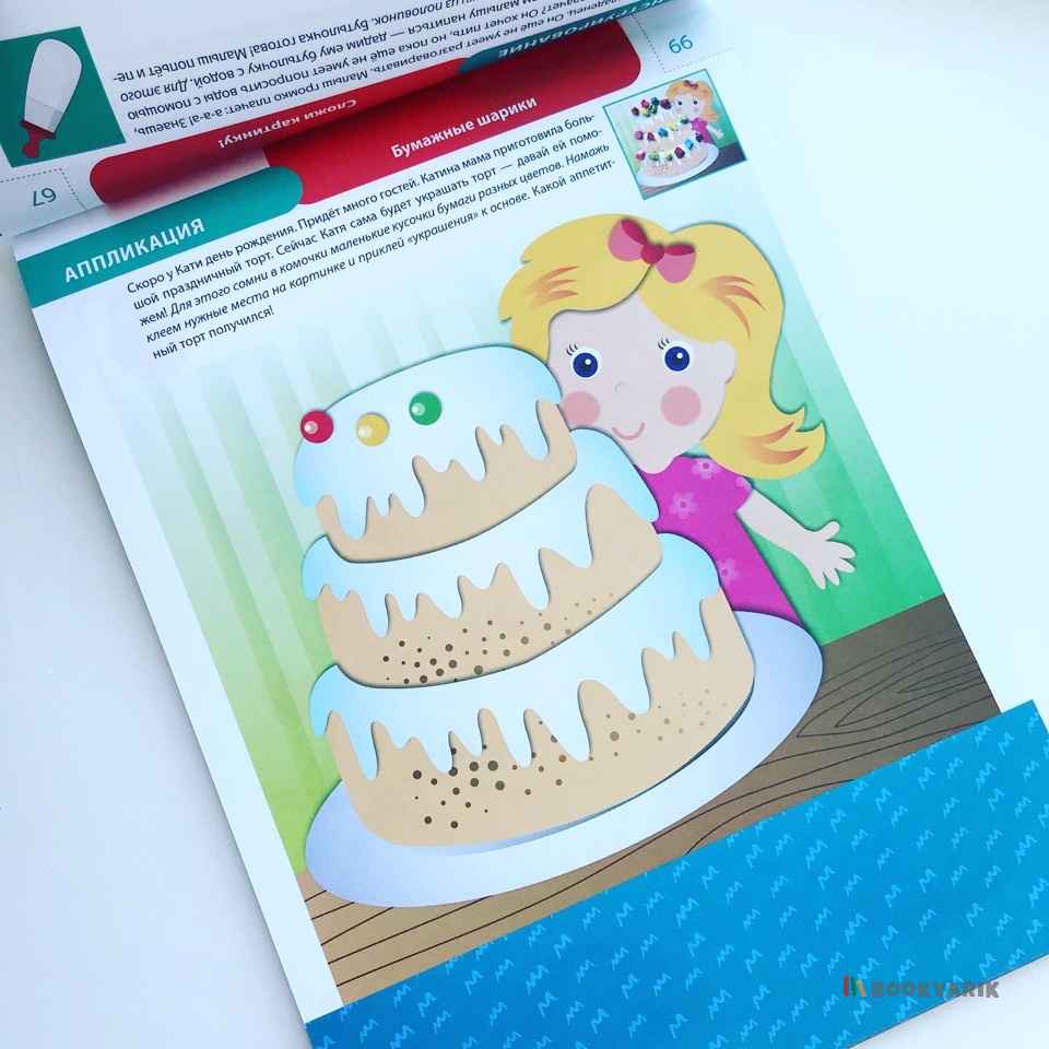 Для занятий, кроме самого альбома, вам потребуются безопасные детские ножницы с закругленными концами, клей-карандаш и двусторонняя цветная бумага для объемных поделок.