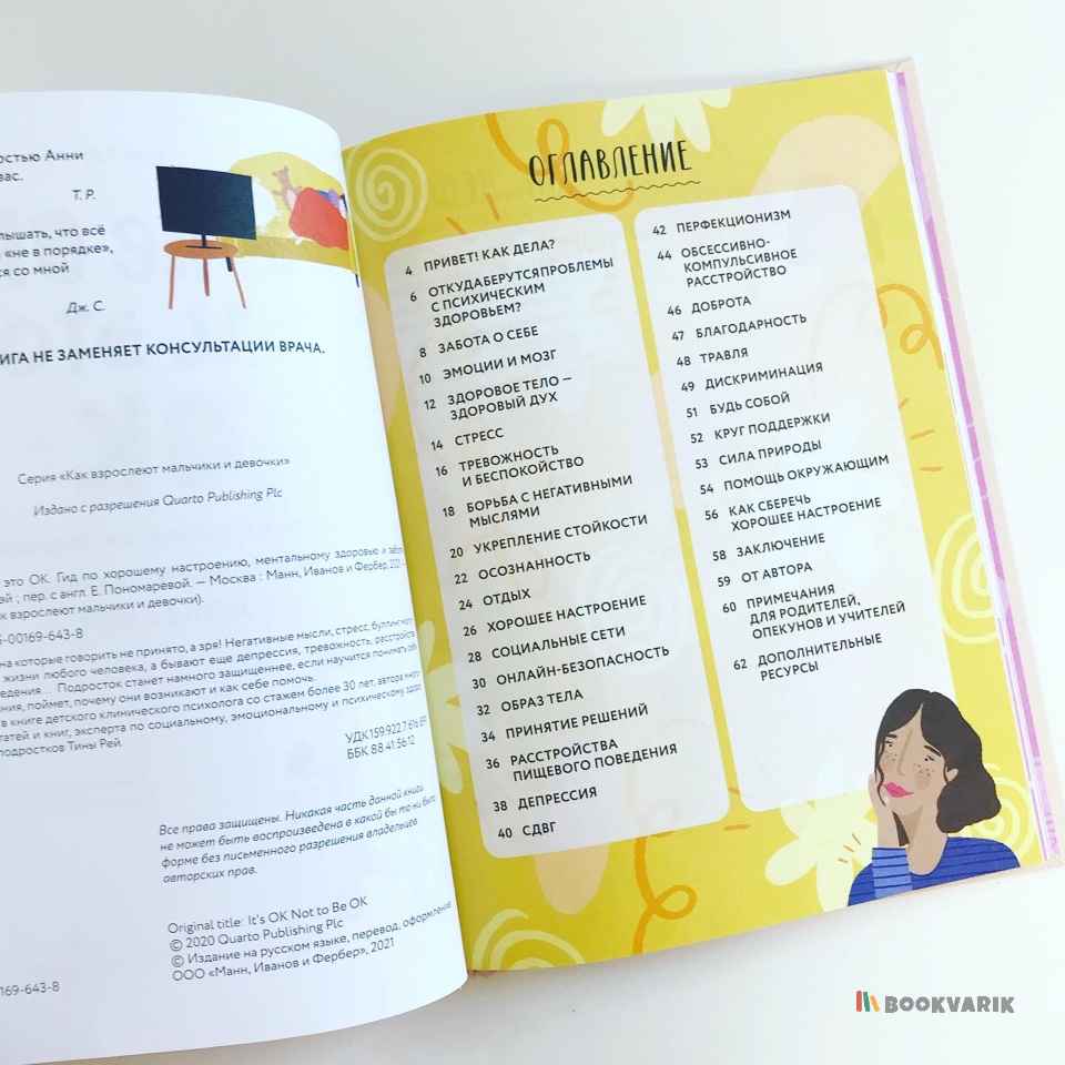 Подросток узнает, как распознать стресс, тревожность, негативные мысли, расстройство пищевого поведения, депрессию, СДВГ, перфекционизм, буллинг. И как помочь себе при помощи стойкости, осознанности, отдыха, заботы о себе, поддержки близких, добрых дел.