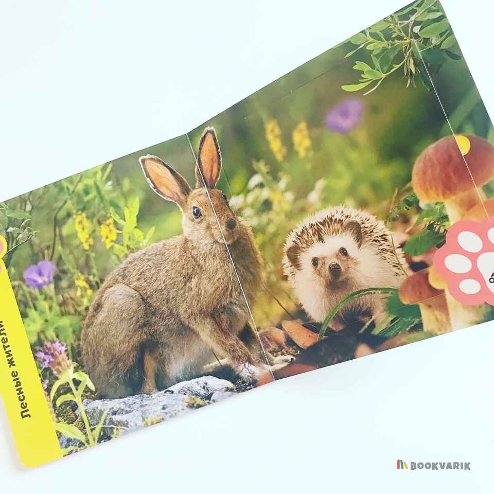 Книжка познакомит малыша с домашними и лесными животными, обителями фермы и птичьего двора.