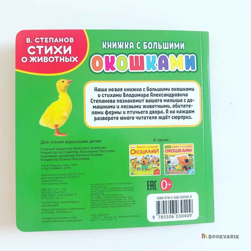 Книжка с большими окошками "Стихи о животных" В. Степанов