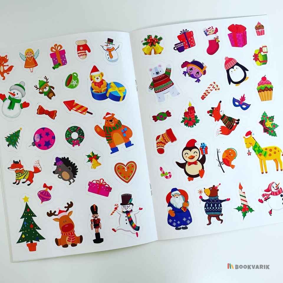 Ведь внутри их ждёт целых 8 листов с наклейками! Ребёнок обязательно оценит весёлые новогодние сюжеты, отражённые на наклейках.