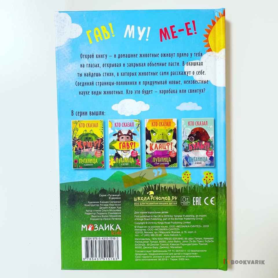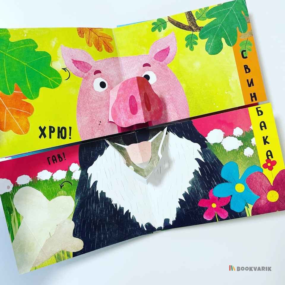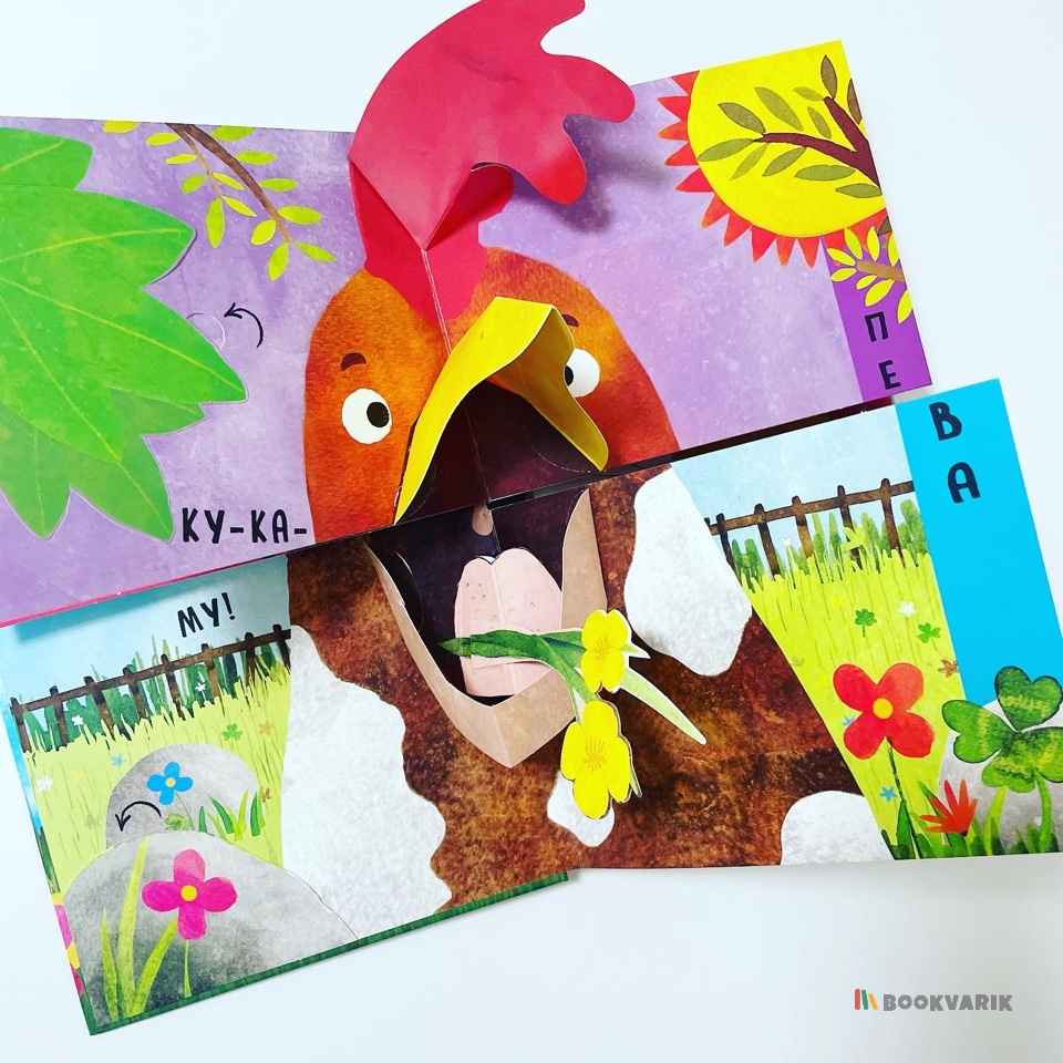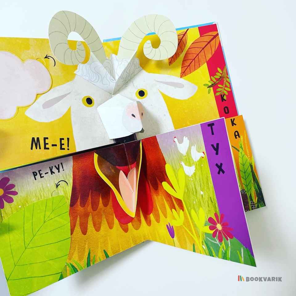 Слушая стихи, спрятанные под клапанами, маленький читатель узнает много интересного об обитателях деревни, а, соединяя страницы-половинки, сможет придумать новые, неизвестные науке виды животных.