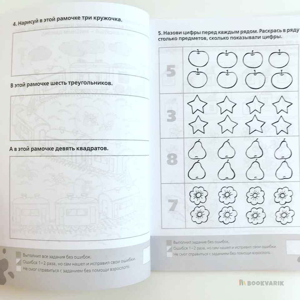 Самый полный сборник тестовых заданий, разработанный профессиональными педагогами и психологами. С помощью этих тестов вы легко определите уровень развития вашего малыша, а главное, сможете подвести итог всей проделанной работе по развитию 4-5-летнего ребенка и подготовить его к следующему, более углубленному этапу занятий. Если результаты тестирования оказались не достаточно высокими - не огорчайтесь!