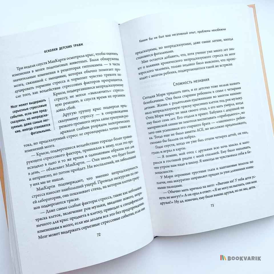 Автор не только объясняет, как стресс, испытанный в детстве, может разрушить здоровье, но и рассказывает, как помочь себе избавиться от болезней и других тяжелых последствий - самостоятельно и с помощью врача.