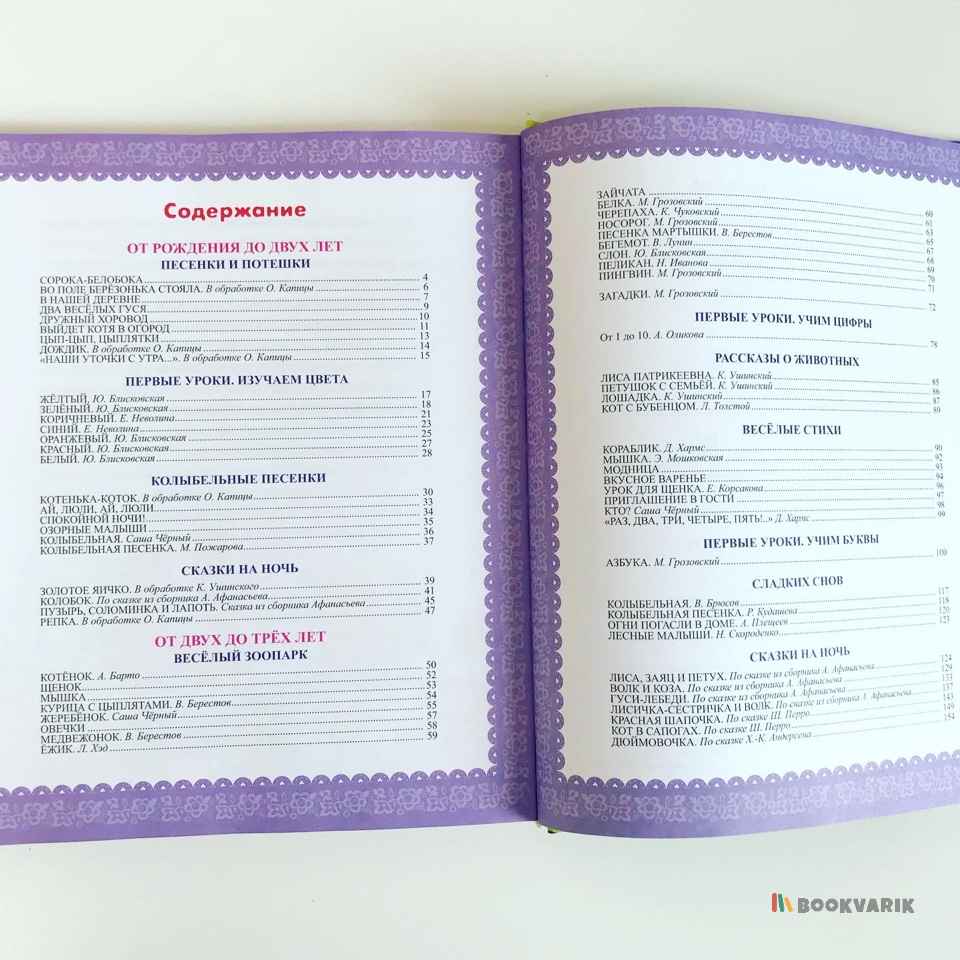 В этой книге собраны лучшие стихотворения, рассказы и сказки для занятий с детьми от - до 3 лет. Представленная здесь же рубрика "Первые уроки" поможет вашему ребенку легко, играючи изучить цвета, цифры и буквы.