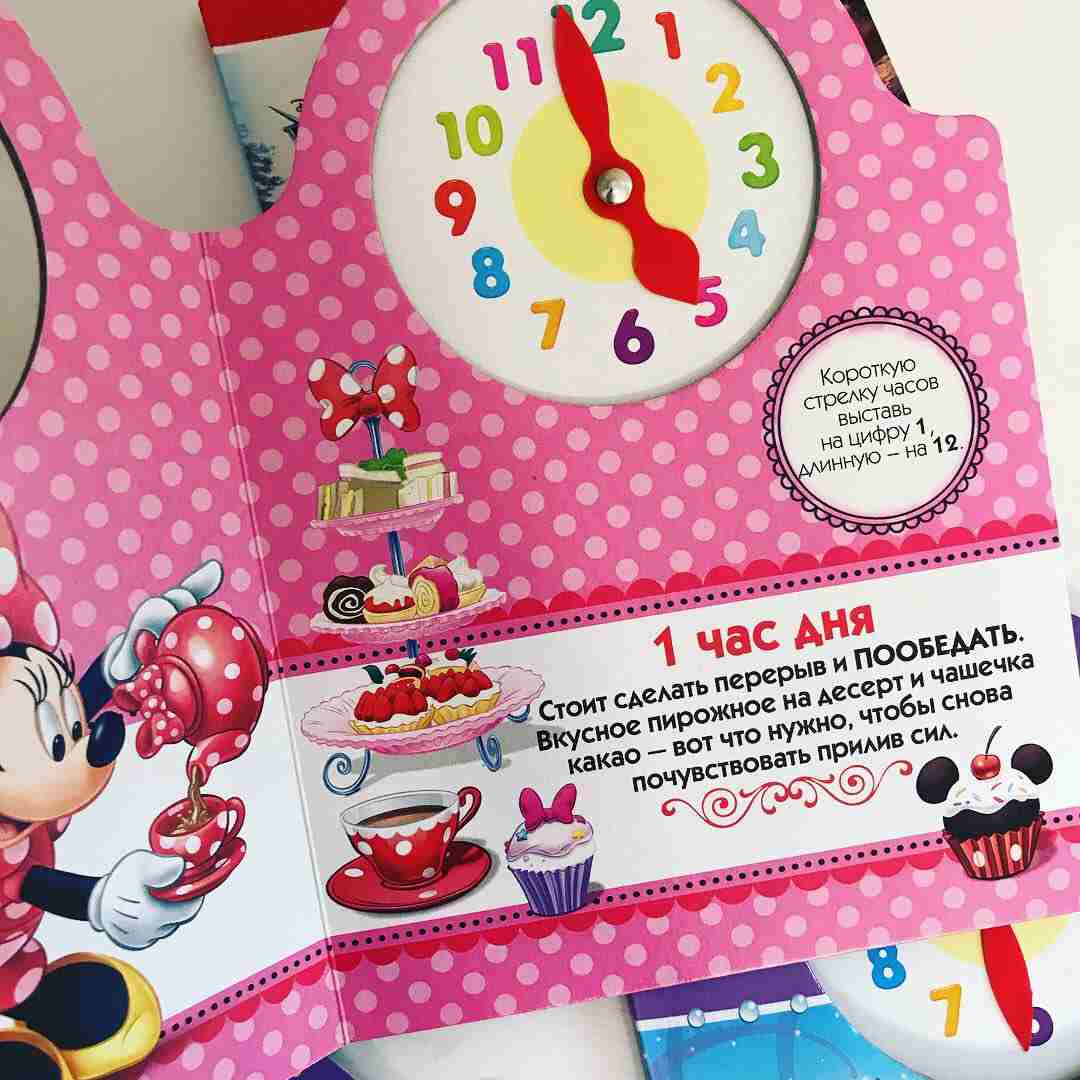 Серия «Часики» — это яркие и познавательные книжки с любимыми героями Disney. В книжках с часиками есть красочный циферблат с двигающимися стрелками. С помощью этих занимательных книг ваш малыш научится определять время по часам, узнает, что показывает длинная стрелка, а что — короткая, сам сможет выставлять время.
