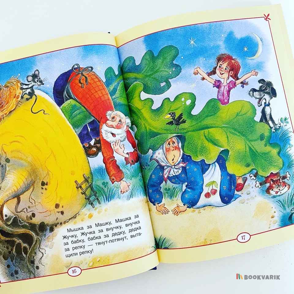 Большой красочно иллюстрированный сборник, в который вошли самые известные русские народные сказки (обработка М. Булатова, А. Толстого, О. Капицы) и произведения великих сказочников - Шарля Перро, Ханса Кристиана Андерсена, братьев Гримм.