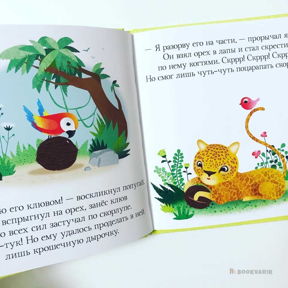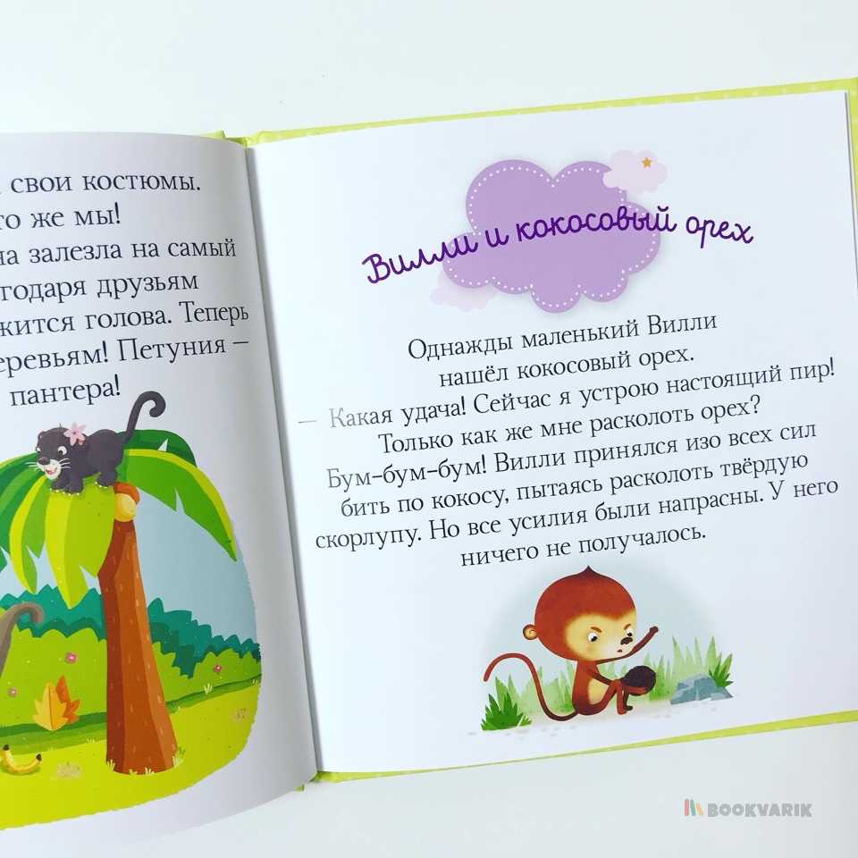 Добро пожаловать в джунгли, загадочные и опасные! Здесь на каждой страничке, то есть на каждой лиане, висит обезьяна и кругом невероятные растения. Расскажите малышу перед сном про смелых зверят и обсудите прочитанные истории: это поможет ребенку ориентироваться в реальных жизненных ситуациях, научит правильно реагировать в различных обстоятельствах.
