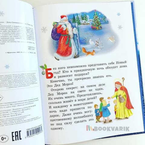 Новогодняя книжка -"вертушка". Увлекательный и подробный рассказ о Деде Морозе и его внучке Снегурочке, который можно начинать читать с любой стороны книги.