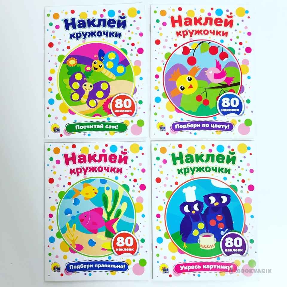 Необычные книжечки с наклейками - настоящий подарок вашему малышу. На каждой страничке - яркая картинка и задание: приклеить кружочек нужного цвета.