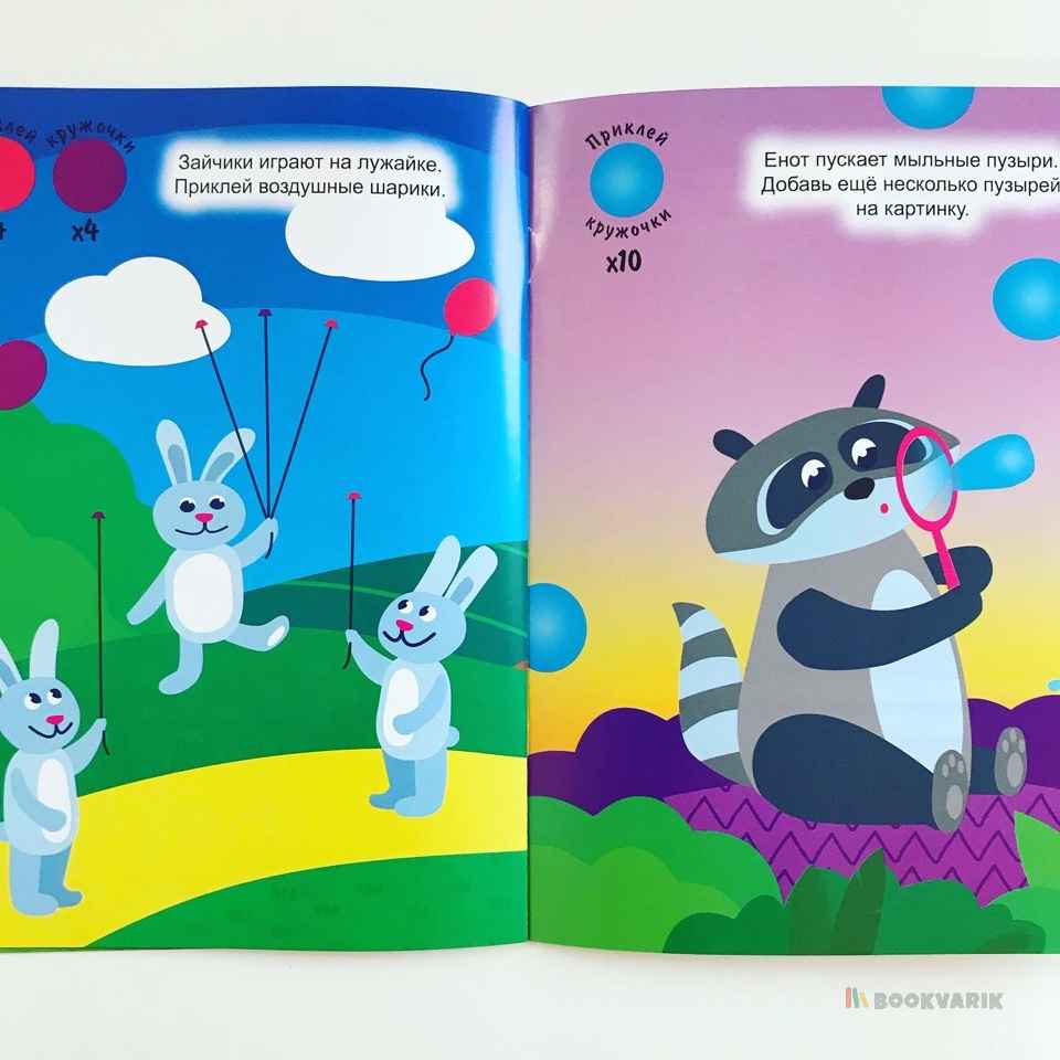 Необычные книжечки с наклейками - настоящий подарок вашему малышу. На каждой страничке - яркая картинка и задание: приклеить кружочек нужного цвета.