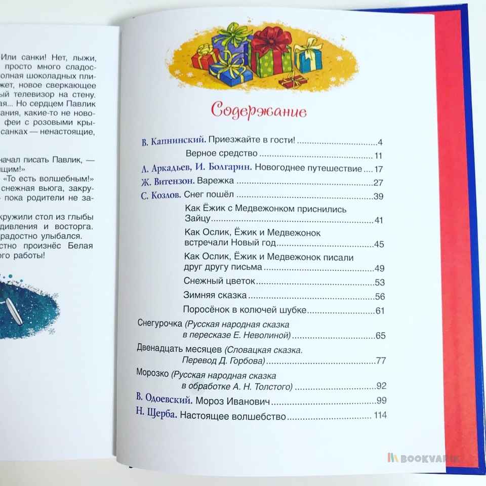Эта книга сказок создаст чудесное новогоднее настроение и детям, и взрослым. Вы встретите Новый год вместе с героями замечательных зимних сказок Сергея Козлова о Ёжике, Медвежонке и Ослике, проникнетесь красотой народных сказок «Снегурочка», «Морозко» и «Двенадцать месяцев» и откроете удивительный мир волшебства в сказках лучших детских писателей.